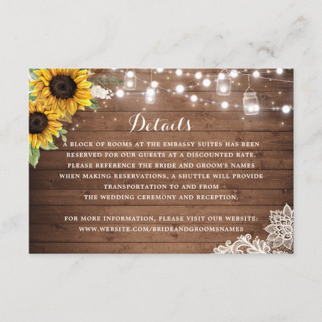 Rustic Sunflower Wood String Lights Details Insert Invitation #rustic #string #lights #floral #invitation #Invitation
