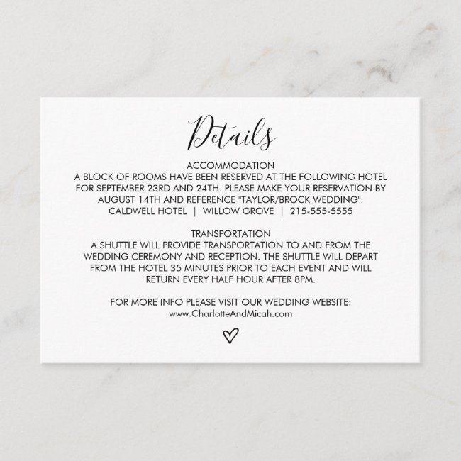 Hand Drawn Heart Wedding Details Insert Card #wedding #details #simple #wedding #detail