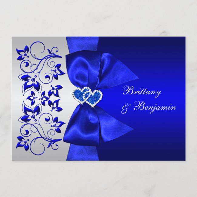 PRINTED RIBBON Blue Silver Floral Wedding Invite